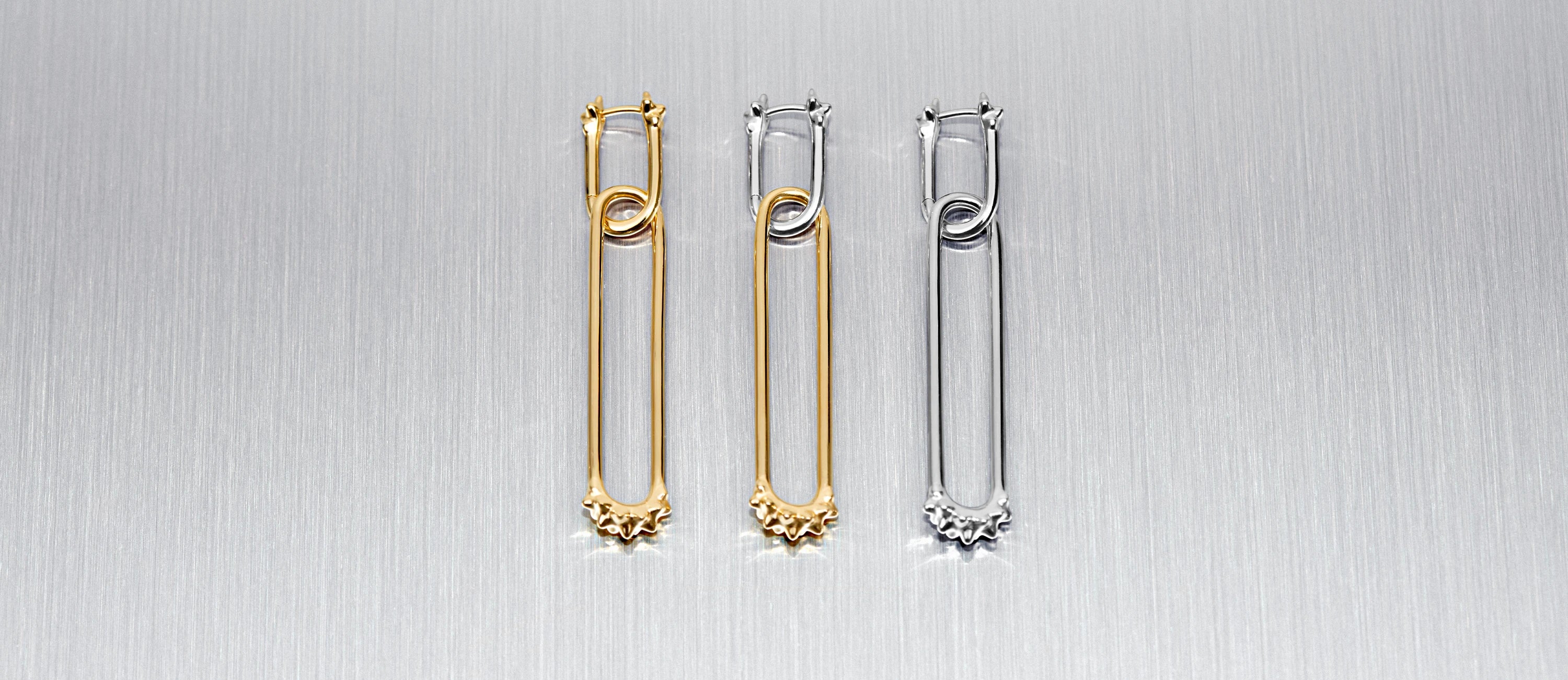 Diese wandelbaren Ohrringe bieten unendliche Styling-Möglichkeiten: dezent als Mini-Creole, mit eingehängtem Statement-Element, asymmetrisch oder im Mixed-Metal-Look.
